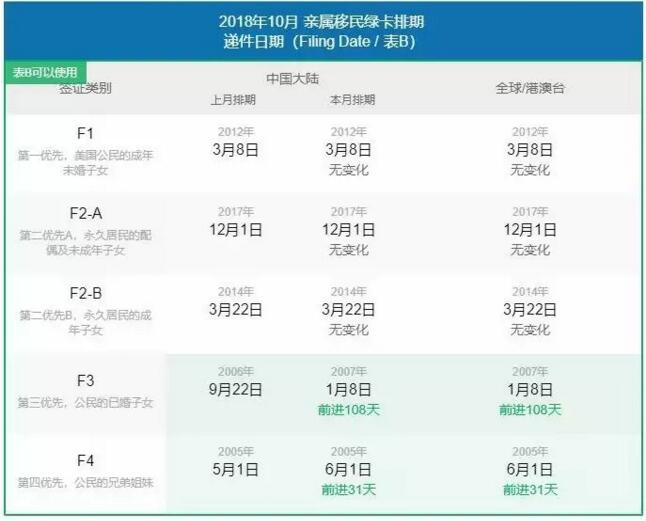 2018年10月綠卡排期表出爐,有人歡喜有人憂