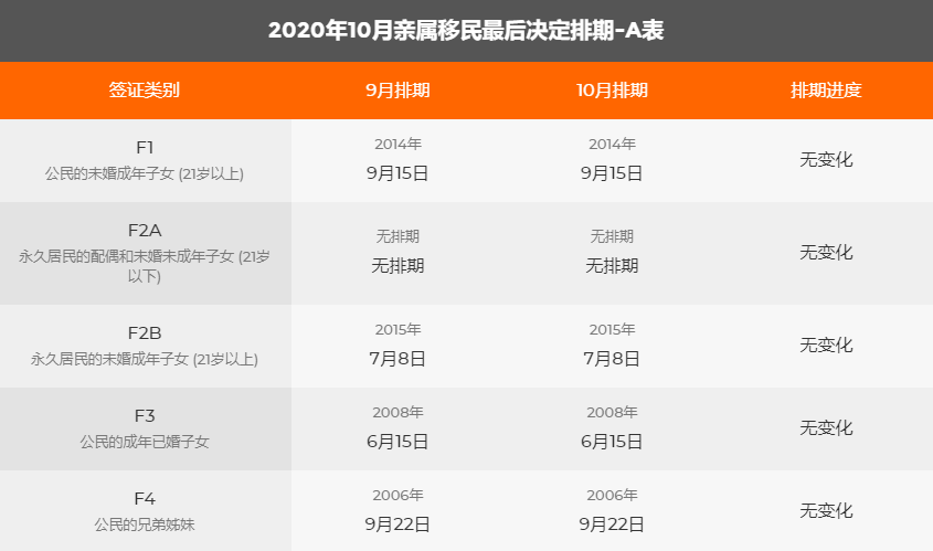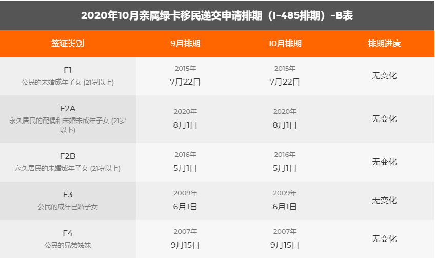 2020年10月綠卡移民排期公布,職業移民有大幅前進!